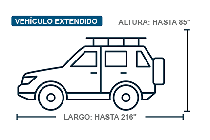- Longitud máxima: 192 pulgadas (16 pies), incluyendo portaequipajes