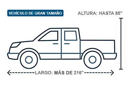 Ciertos vehículos extragrandes como el Ford F150, Ford Excursion, Chevrolet Silverado y Chevrolet Suburban califican como vehículos de gran tamaño ya que superan la longitud máxima de un vehículo extendido (18 pies). Cualquier vehículo que supere los 18 pies de largo requiere arreglos especiales para la reservación de espacio adicional para un segundo vehículo y un pago adicional. Llame al 1-877-SKIP-I95 (1-877-754-7495) para hacer su reservación.